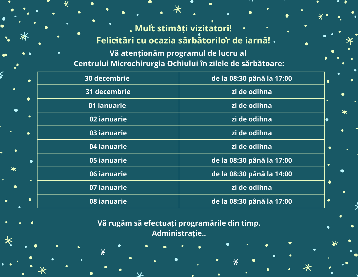 Program de lucru în perioada sărbătorilor de iarnă 2025-2026