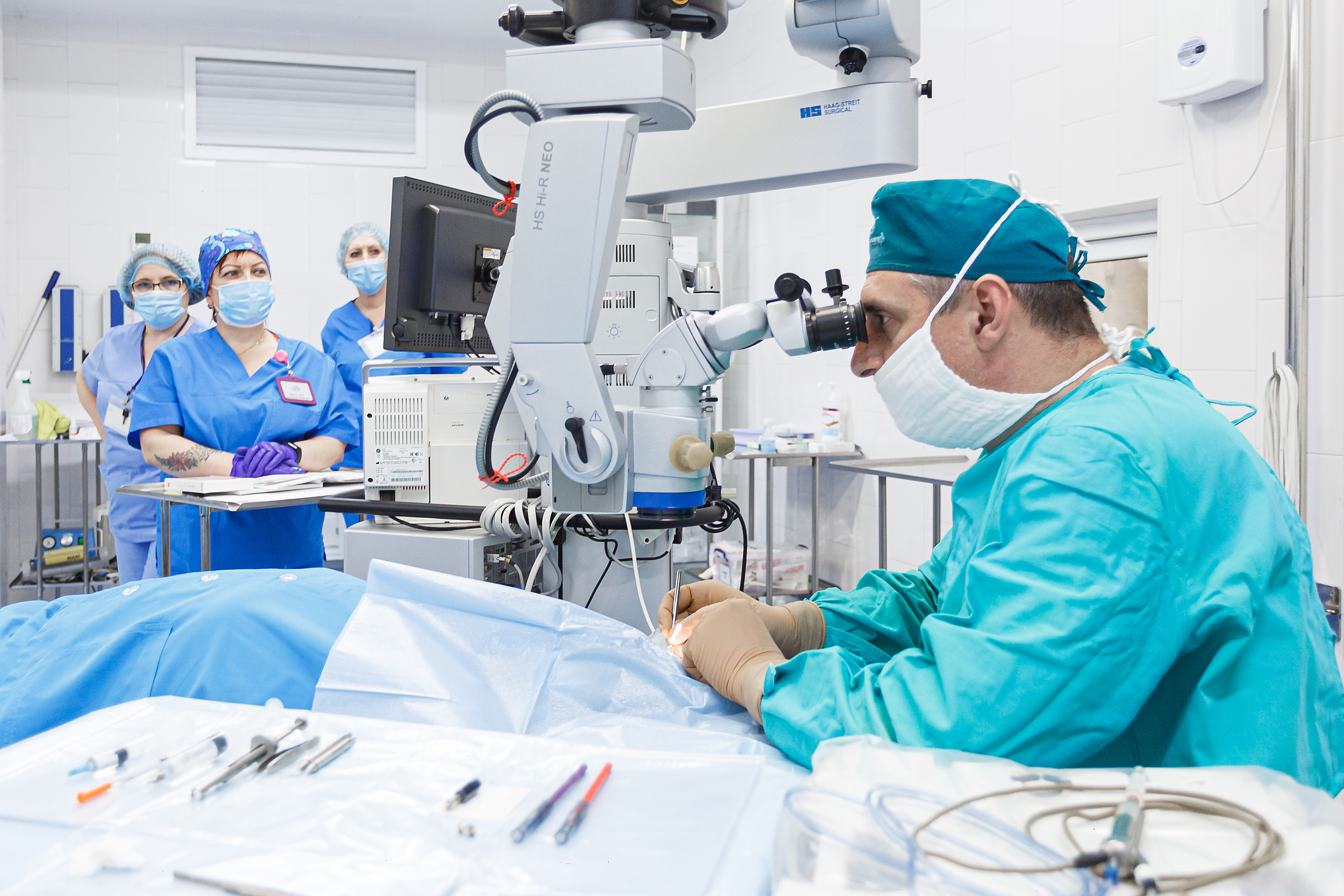 По словам врачей клиники, идеально настроенная оптика и LED освещение позволяют видеть не только мельчайшие детали и зоны поражения глаза, но и абсолютно прозрачные ткани, такие как капсула хрусталика, сохранение целостности которой является одной из важнейших задач катарактального хирурга. Кроме превосходной оптики, микроскопы HS-Ri NEO очень удобны благодаря превосходно сбалансированному штативу, и два этих фактора в комплексе обеспечивают высочайшее удобство и точность в работе хирурга, а также максимальную безопасность для пациента. Как уверяют в Центре «Микрохирургия глаза», результатом является совершенно другое качество и результат операционного вмешательства. Кроме этого, один из приборов оснащен встроенным микроскопом для ассистента, что дает возможность, при необходимости, работать двум хирургам одновременно.